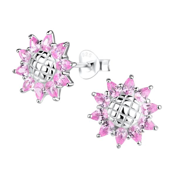 Silver Sunflower Stud Earrings