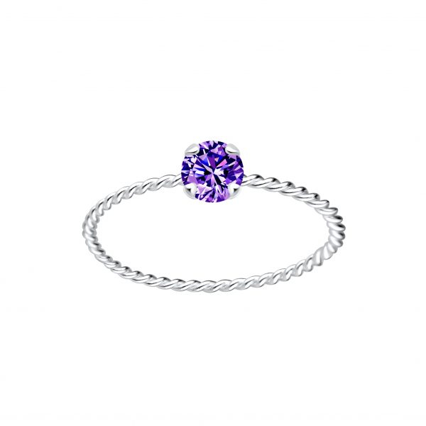 4mm Round Cubic Zirconia Silver Twisted Band Solitaire Ring
