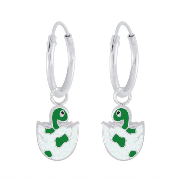 Silver Dinosaur Charm Hoop Earrings