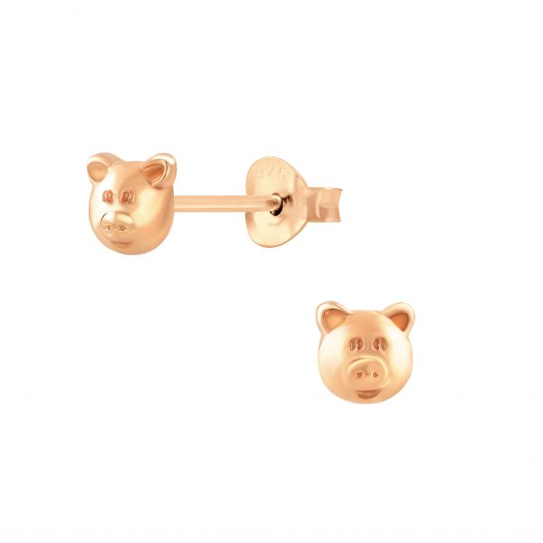 Silver Pig Stud Earrings