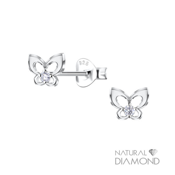Silver Butterfly Stud Earrings With Diamond