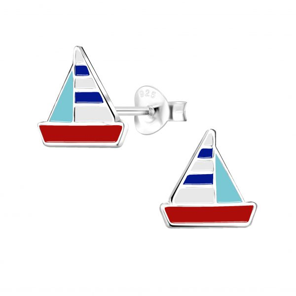 Silver Sailboat Stud Earrings