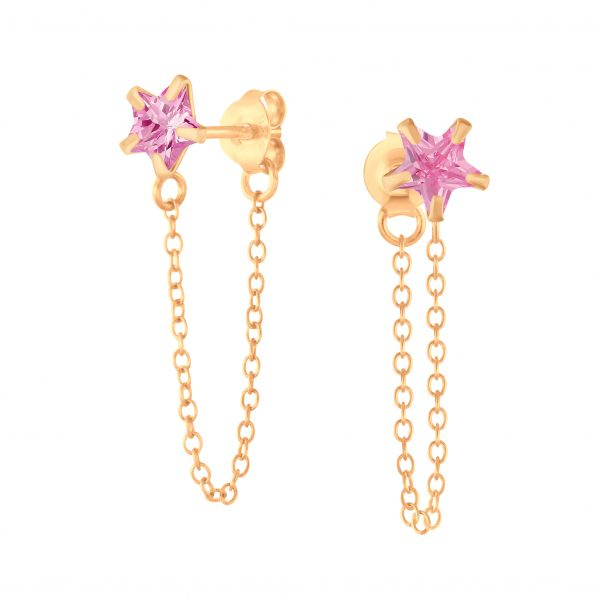 6mm Star Cubic Zirconia Silver Stud Earrings with Chain