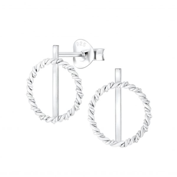 Silver Twisted Circle Stud Earrings