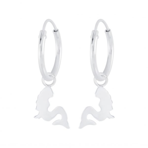 Silver Mermaid Charm Hoop Earrings