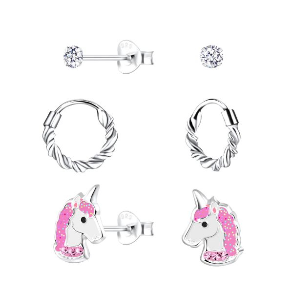 Silver Unicorn Earrings Set