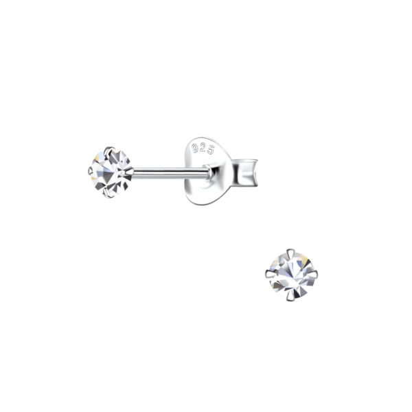 3mm Round Crystal Silver Stud Earrings