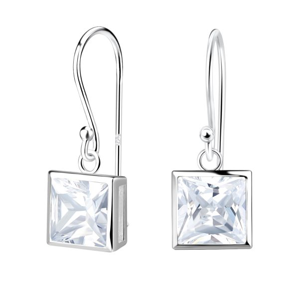 6mm Square Cubic Zirconia Silver Earrings