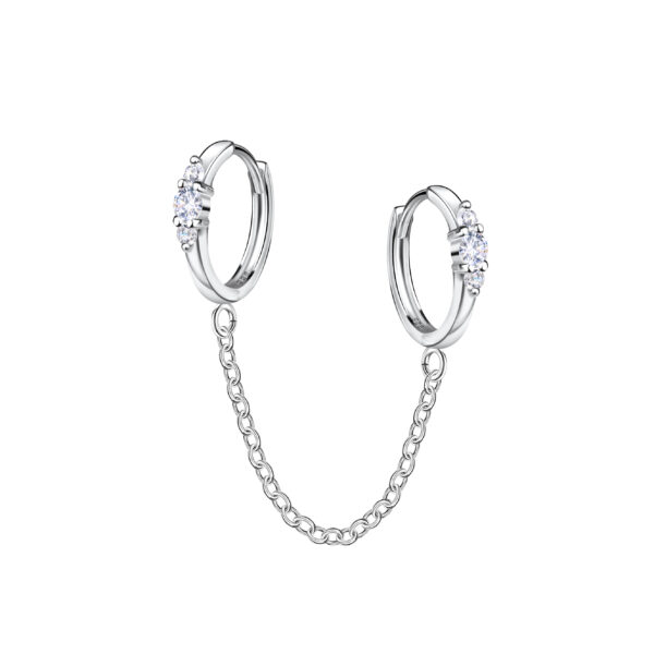 Silver Double Huggie Earrings with Chain
