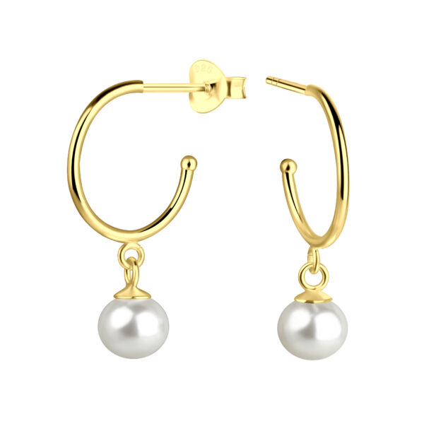 6mm Fresh Water Pearl Silver Half Hoop Stud Earrings