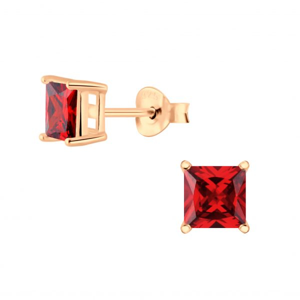 5mm Square Cubic Zirconia Silver Stud Earrings