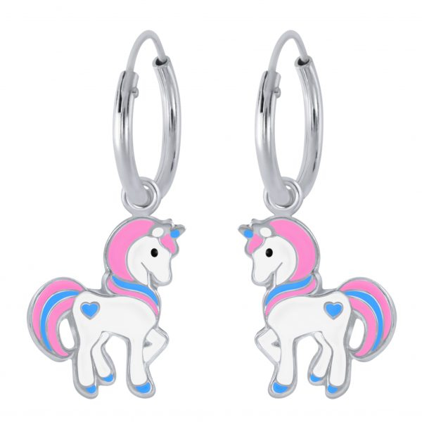 Silver Unicorn Charm Hoop Earrings
