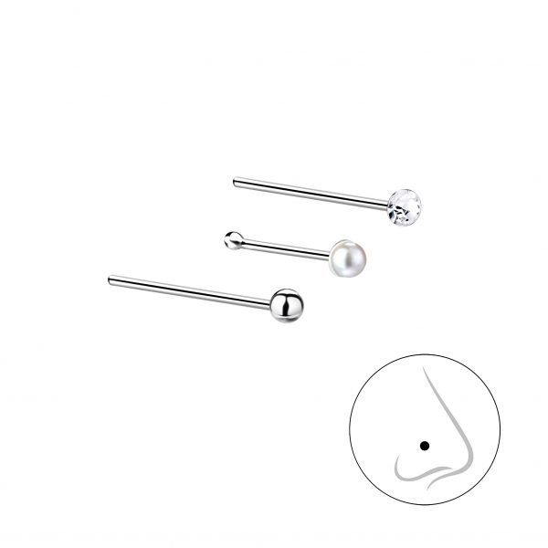 2mm Silver Mixed Nose Studs Set - Pack of 3