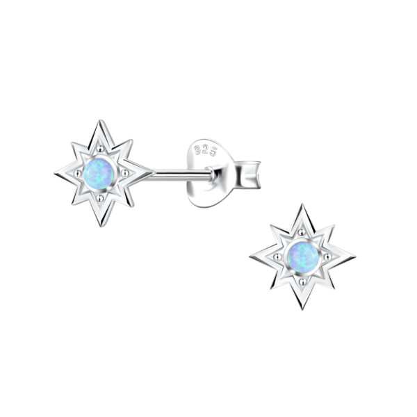 Silver Sun Opal Stud Earrings