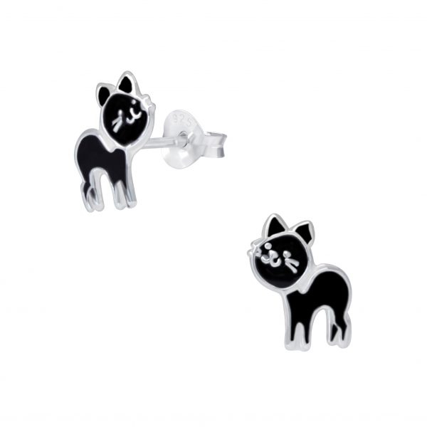 Silver Cat Stud Earrings