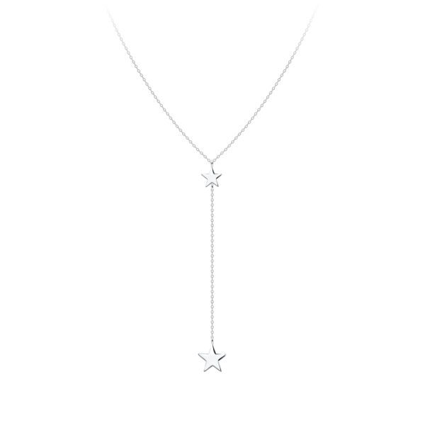 Silver Double Star Y Necklace