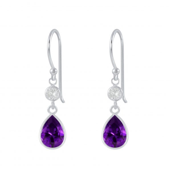 Silver Tear Drop Cubic Zirconia Dangle Earrings