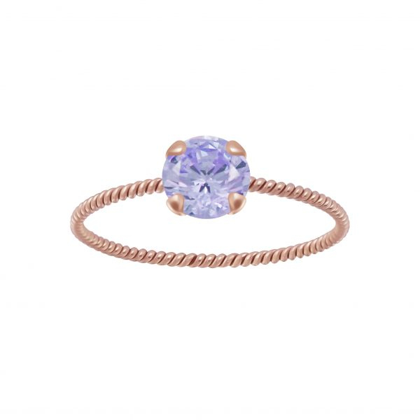 5mm Round Cubic Zirconia Silver Twisted Band Solitaire Ring