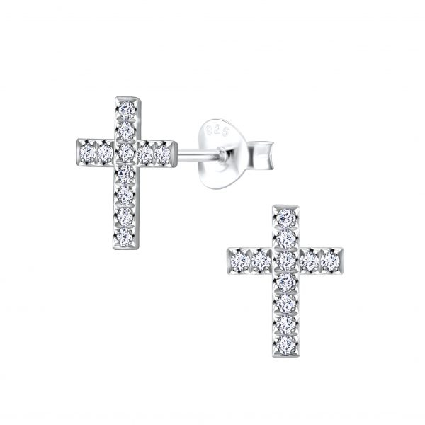 Silver Cross Cubic Zirconia Stud Earring