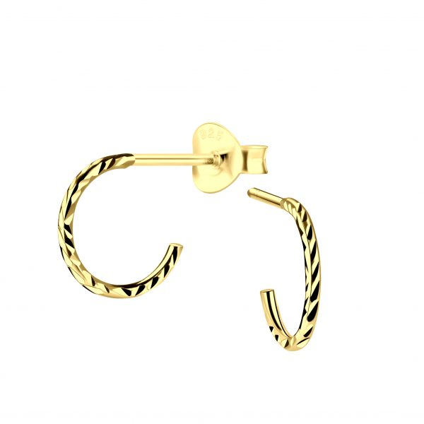 Silver Half Hoop Stud Earrings with Diamond Cut