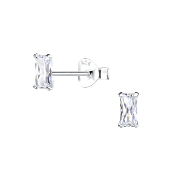 2.5X5mm Baguette Cubic Zirconia Silver Stud Earrings