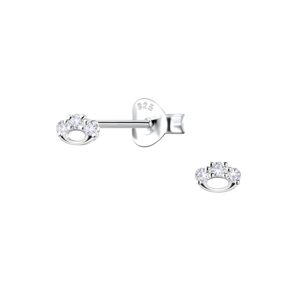 3mm Flower Cubic Zirconia Silver Stud Earrings