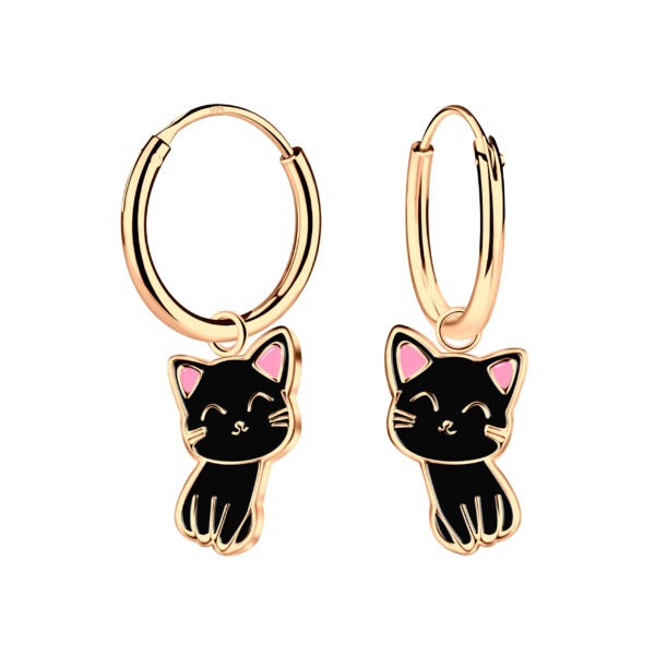 Silver Cat Charm Hoop Earrings