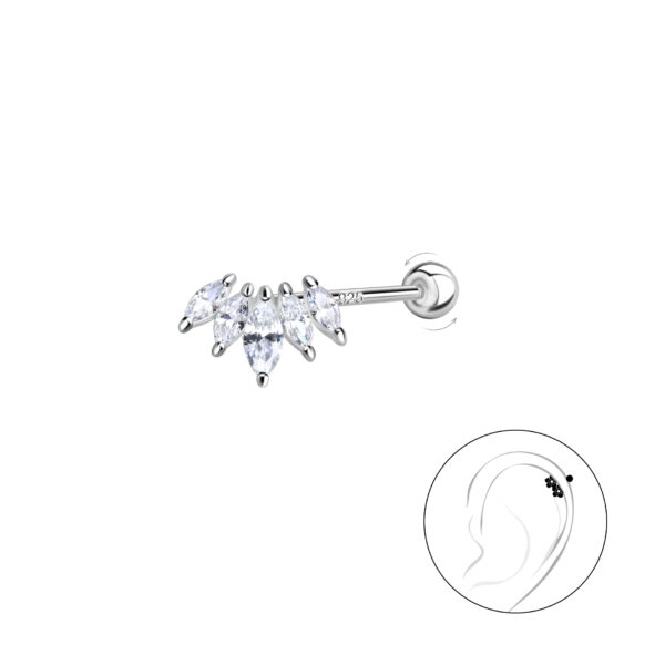 Silver Geometric Cartilage Stud with Silver Ball Screw Back