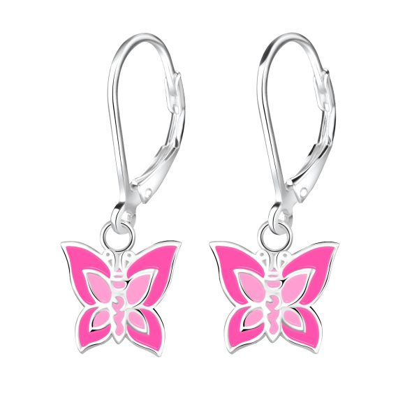 Silver Butterfly Lever Back Earrings