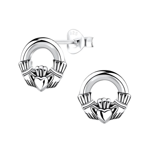 Silver Claddagh Stud Earrings
