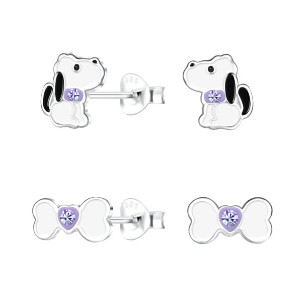 Silver Dog Stud Earrings Set