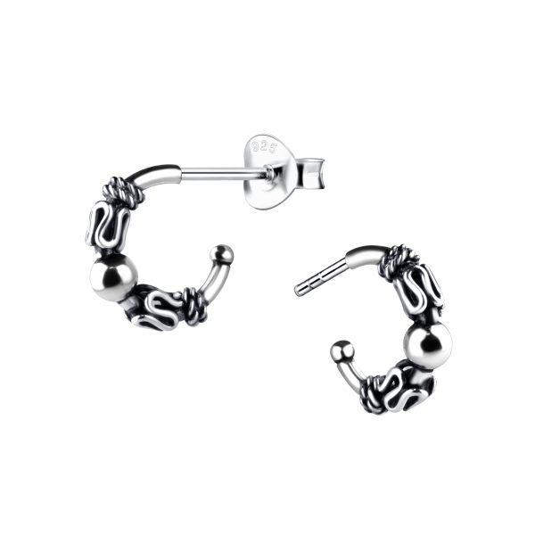 Silver Half Hoop Stud Earrings
