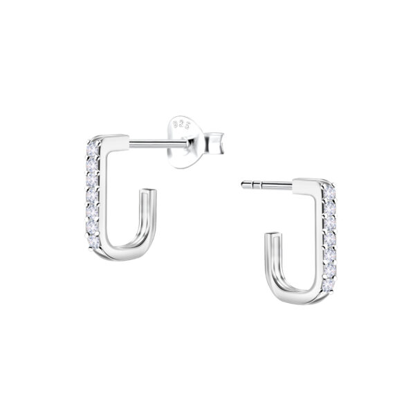 Silver Rectangle Half Hoop Stud Earrings