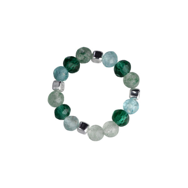Silver Ball and Natural Stone Bead Elastic Ring