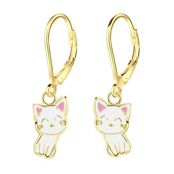 Silver Cat Lever Back Earrings