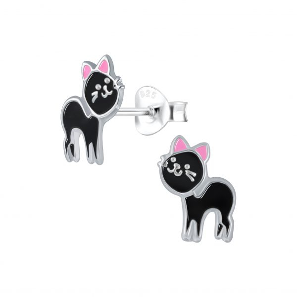 Silver Cat Stud Earrings
