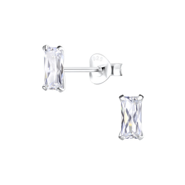 3x6mm Baguette Cubic Zirconia Silver Stud Earrings