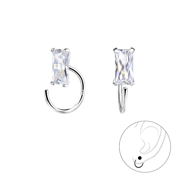 3x6mm Baguette Cubic Zirconia Silver Ear Huggers