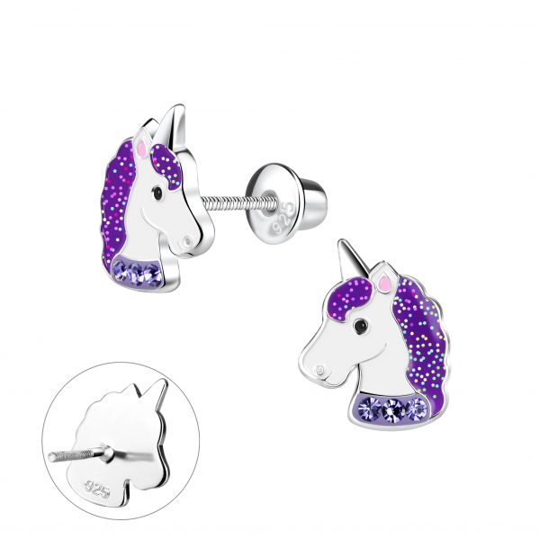 Silver Unicorn Screw Back Bullet Earrings