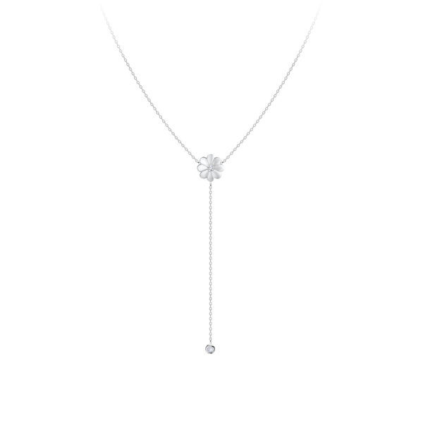 Silver Flower Y Necklace