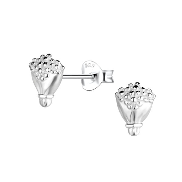 Silver Flower Bouquet Stud Earrings