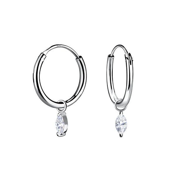 2x4mm Marquise Cubic Zirconia Silver Charm Hoop Earrings