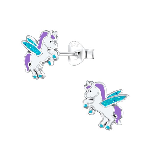 Silver Winged Unicorn Stud Earrings