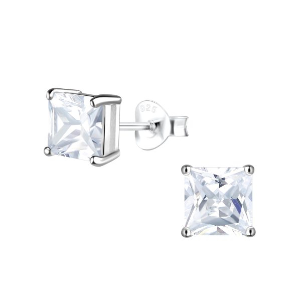6mm Square Cubic Zirconia Silver Stud Earrings