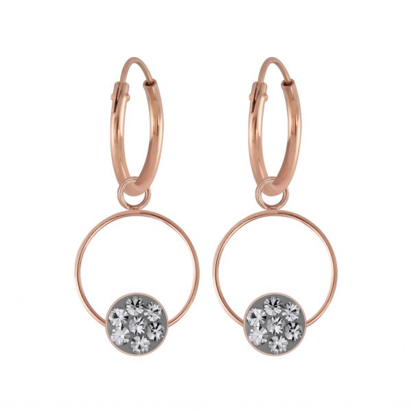 Silver Round Crystal Charm Hoop Earrings