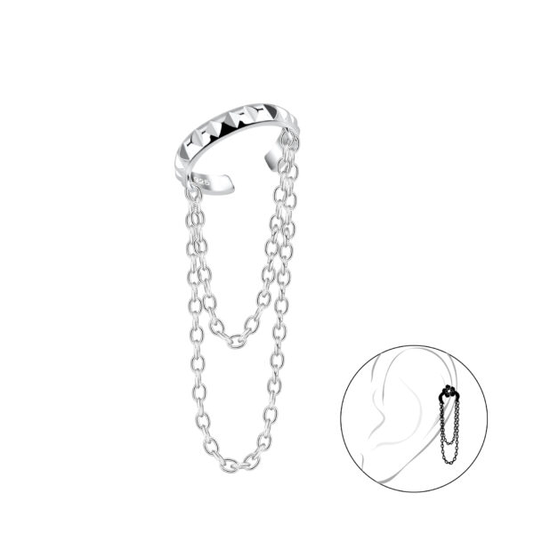 Silver Patterned Ear Cuff with Chain