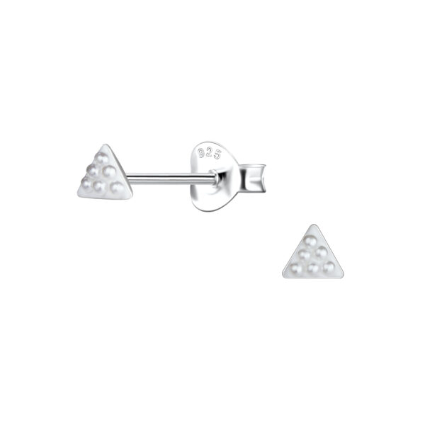 Silver Triangle Stud Earrings with Pearl