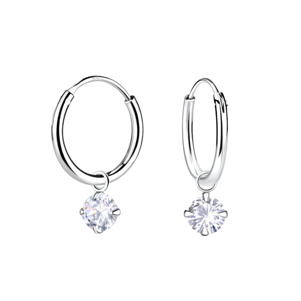 4mm Cubic Zirconia Charm Hoop Earrings