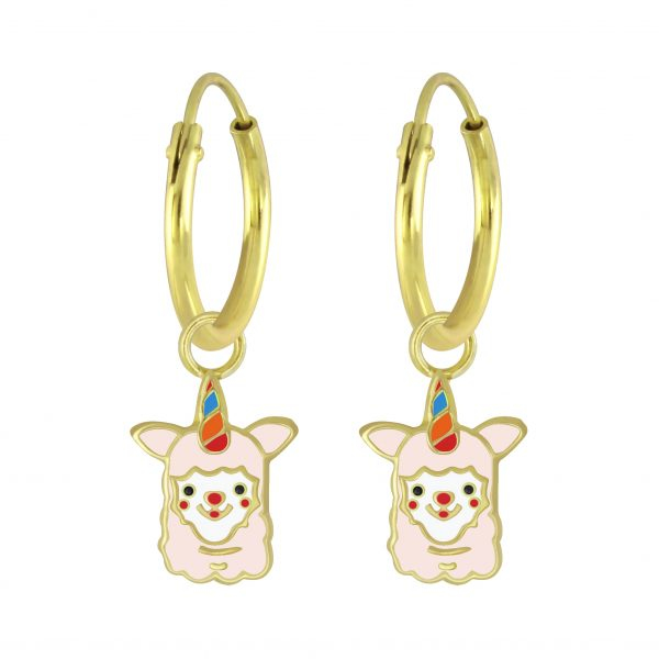 Silver Alpaca Charm Hoop Earrings