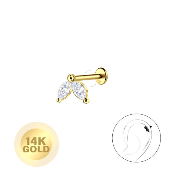 14K Solid Gold - Geometric Labret with 3mm Disc